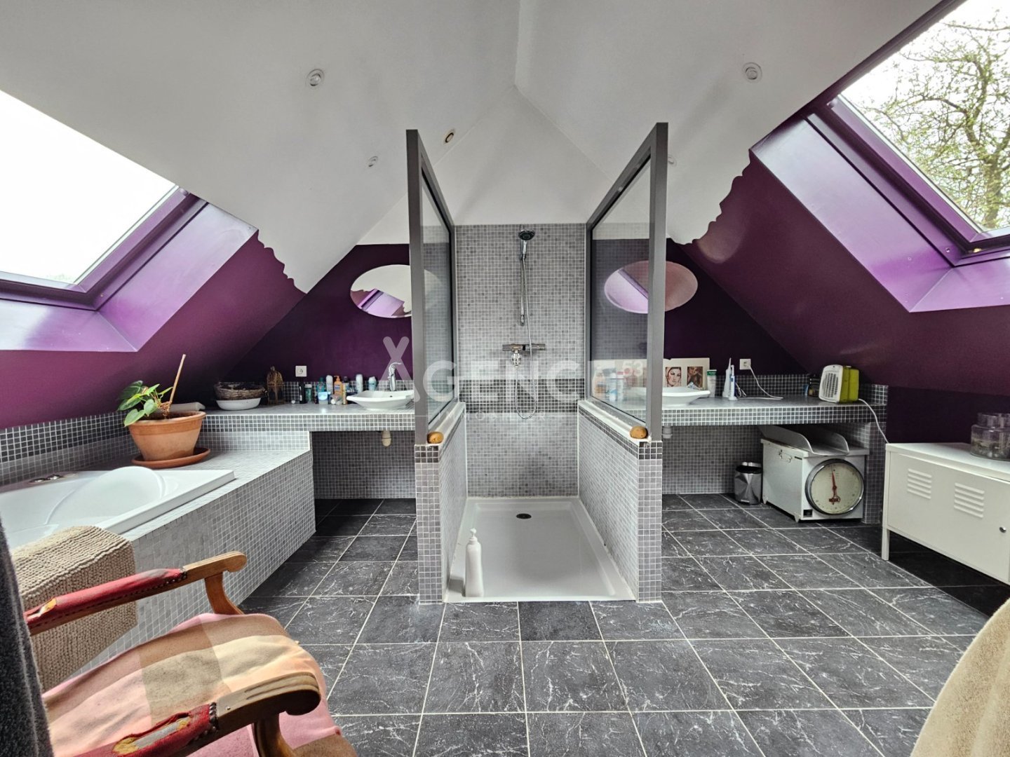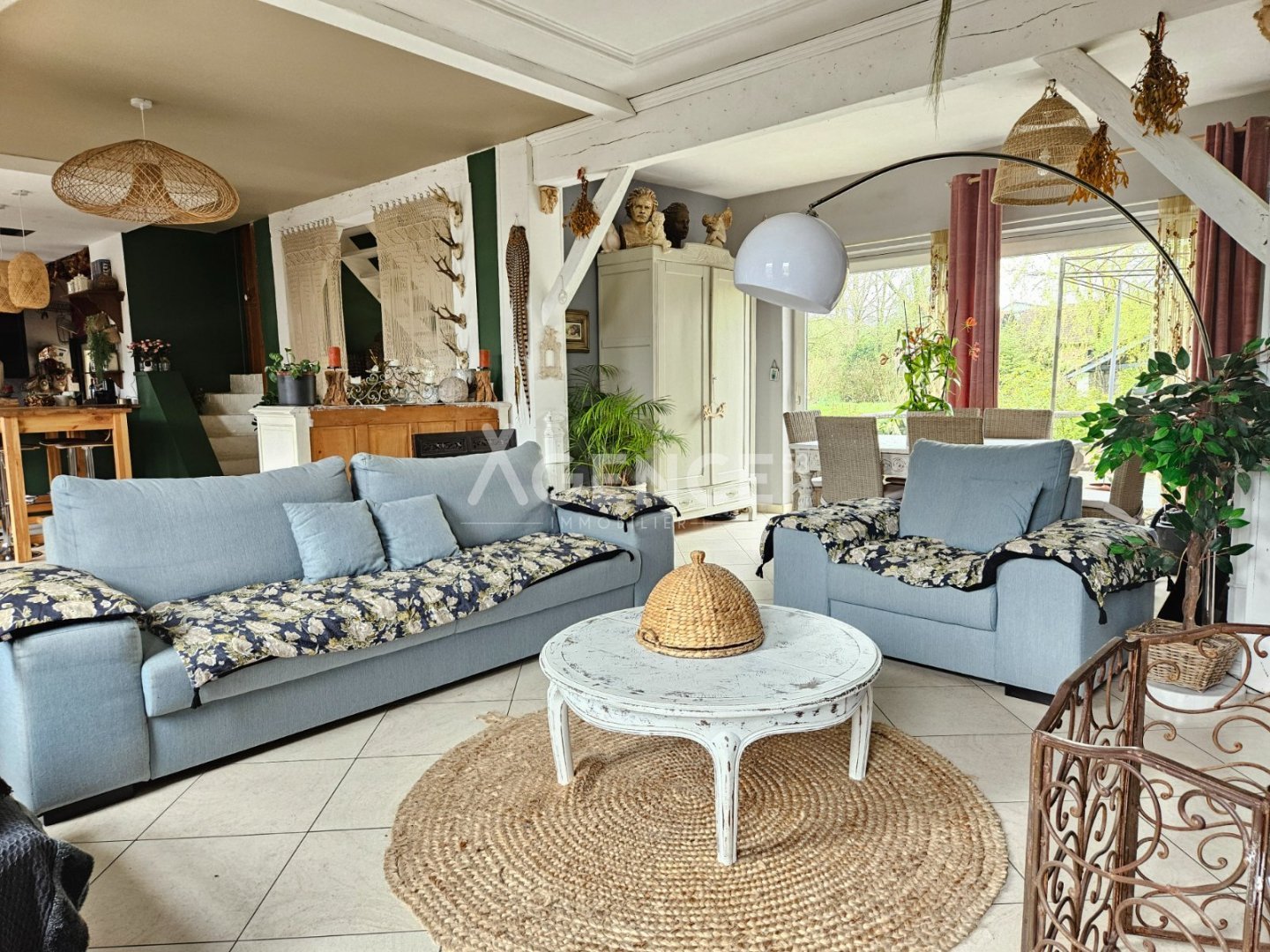 Ancien corps de ferme de 1892, situé dans un écrin de verdure, cette demeure familiale au cachet authentique d'une superficie habitable de 260 m2 se compose d'une cuisine équipée aménagée semi ouverte sur le vaste séjour salle à manger, un bureau, une buanderie, toilettes séparées. En demi étage, se trouve également un autre bureau. Le 1er étage, accessible par 2 escaliers distincts comprend 4 chambres, une salle de bains, toilettes séparées, et une suite parentale avec sa salle de bains privative. De plus, cette maison aux grands volumes dispose d'une cavette, d'un magnifique jardin arboré, une terrasse, un hangar de plus de 300m2 et des dépendances où la superficie totale représente 150m2.Le tout bâti sur un terrain de 6465m2. Afin de profiter paisiblement de vos week-ends, un robot tondeuse est installé , sur la majorité du jardin.