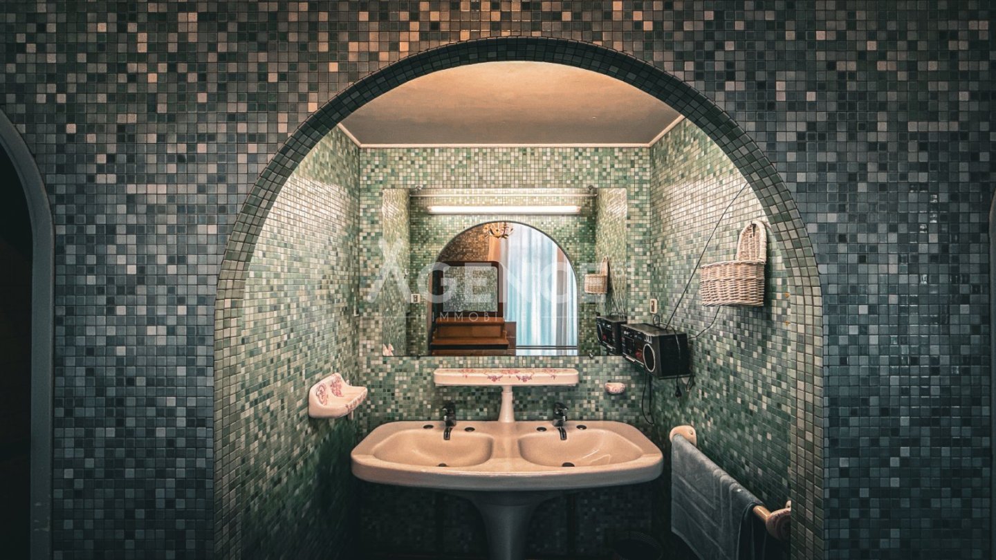 Cette maison de maître avec porche se dresse sur un terrain arboré de plus de 1 200 m² et comprend un garage spacieux de 40 m².